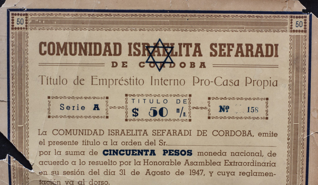 Comunidad Israelita Sefaradí de Córdoba. Título de emprestito interno pro casa propia.