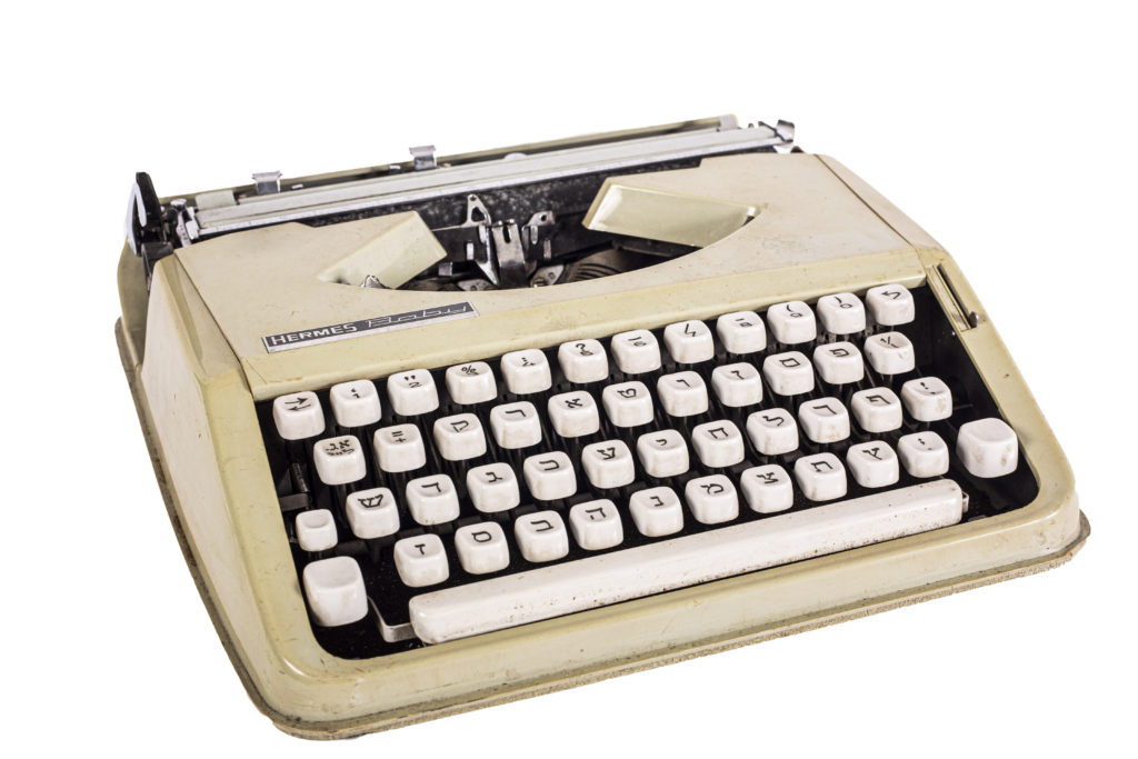 Máquina de escribir con teclado en hebreo. Marca Hermes Baby.
