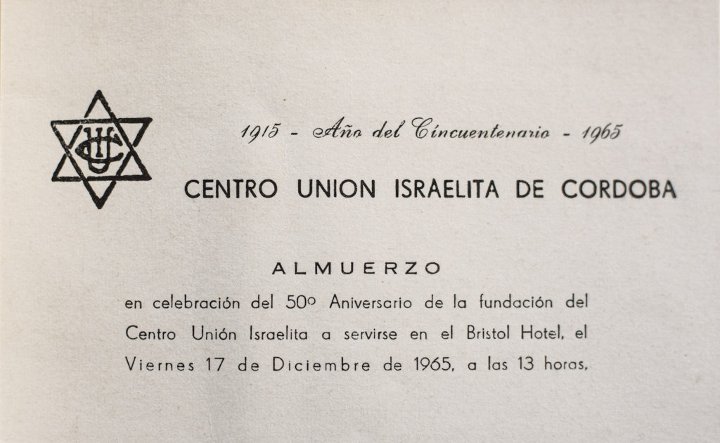 Actividades del cincuentenario. Centro Unión Israelita de Córdoba. Invitación.