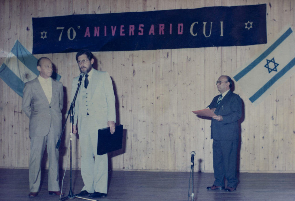 CUI. 70 Aniversario. Año 1985. Rabino Gabriel Frydman, Jose Gorischnik y Natalio Brakin (presidente y vicepresidente del CUI).