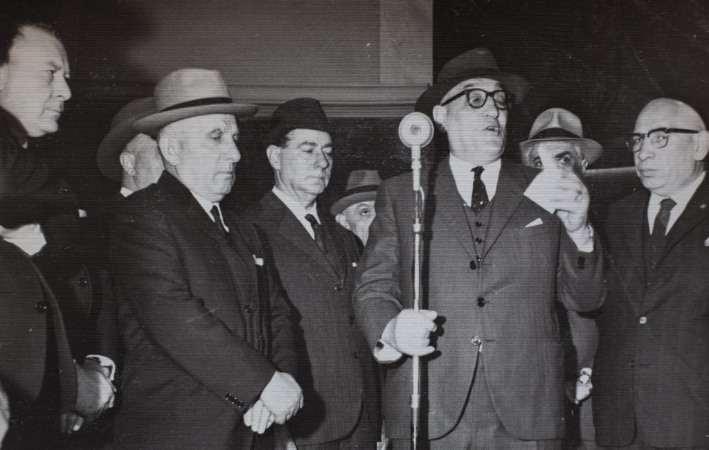 Acto en el CUI. En la foto: Jevel Rosencovich, Zelikas Klor, entre otros.