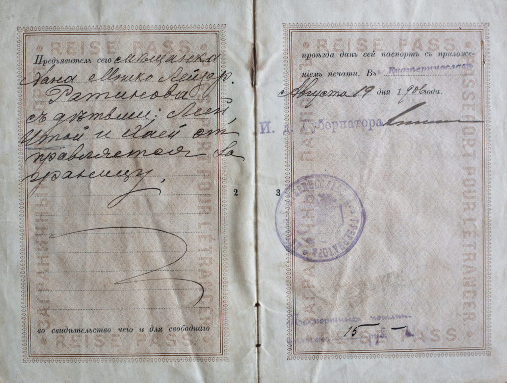 Pasaporte de inmigrantes del Imperio Ruso. Año 1906.