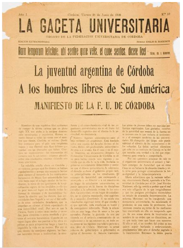 Desde las entrañas de la Universidad Nacional de Córdoba surge el grito de la Reforma Universitaria.