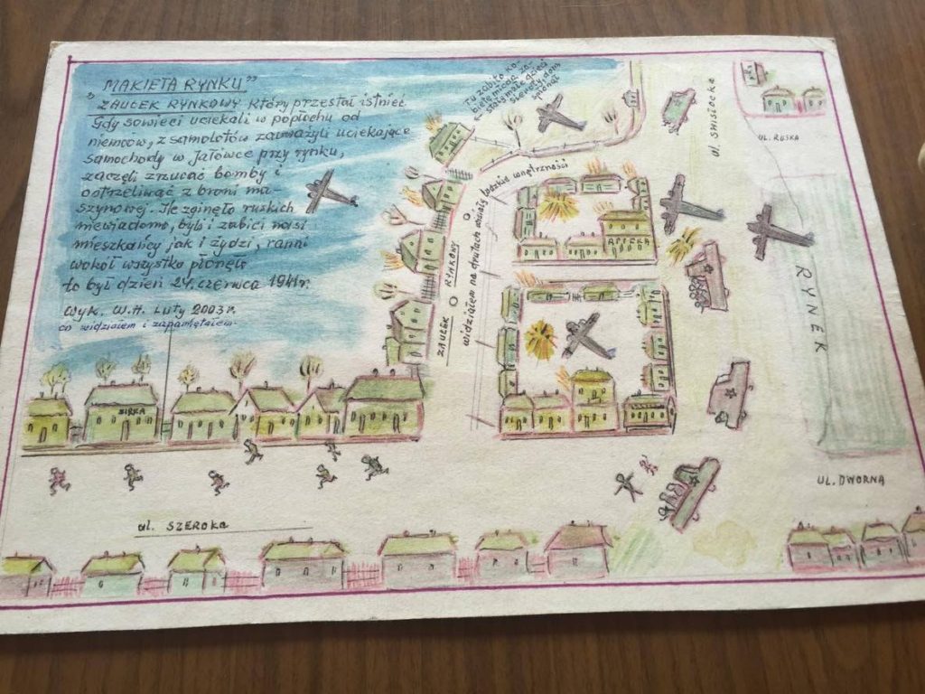 13-Pagina del diario de Waclaw Hajduczenia dodne grafica el bombardeo aleman. Abajo los judios huyendo. a la derecha los tanques del ej