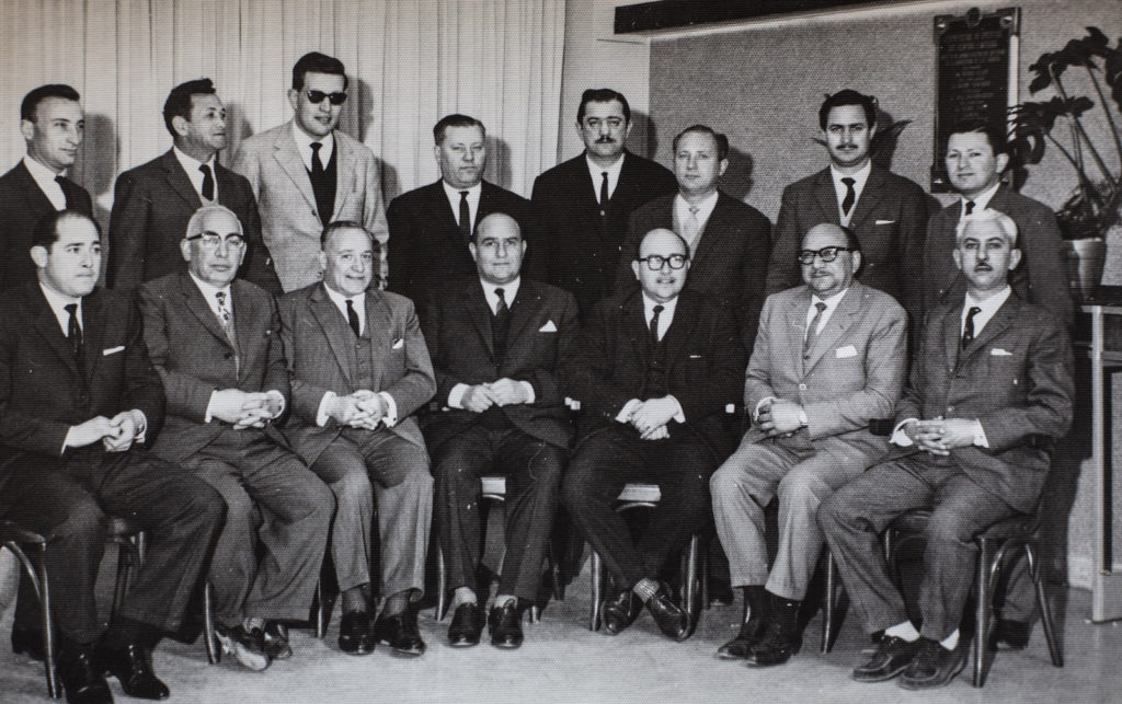 Comisión directiva. En la foto: Herman Blejer, Adolfo Akselrad, Simón Halac, Abraham Volovich, entre otros.