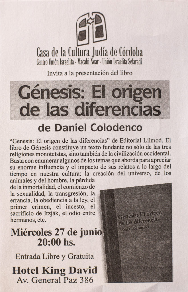 Casa de la Cultura Judía del Centro Unión Israelita de Córdoba. Programa.