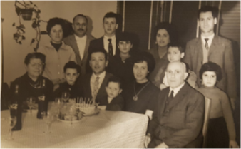 Abajo (en los extremos de la mesa, mis padres). Arriba a la derecha mi esposo Pedro Ogorinsky, yo, junto a nuestros hijos Carlos y Alicia (Fabián no había nacido)